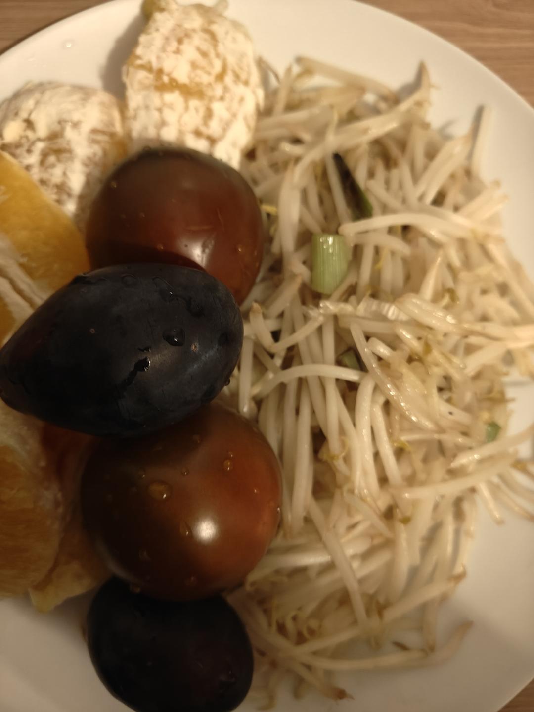 蚝油花椒油粉盐炒葱花绿豆芽