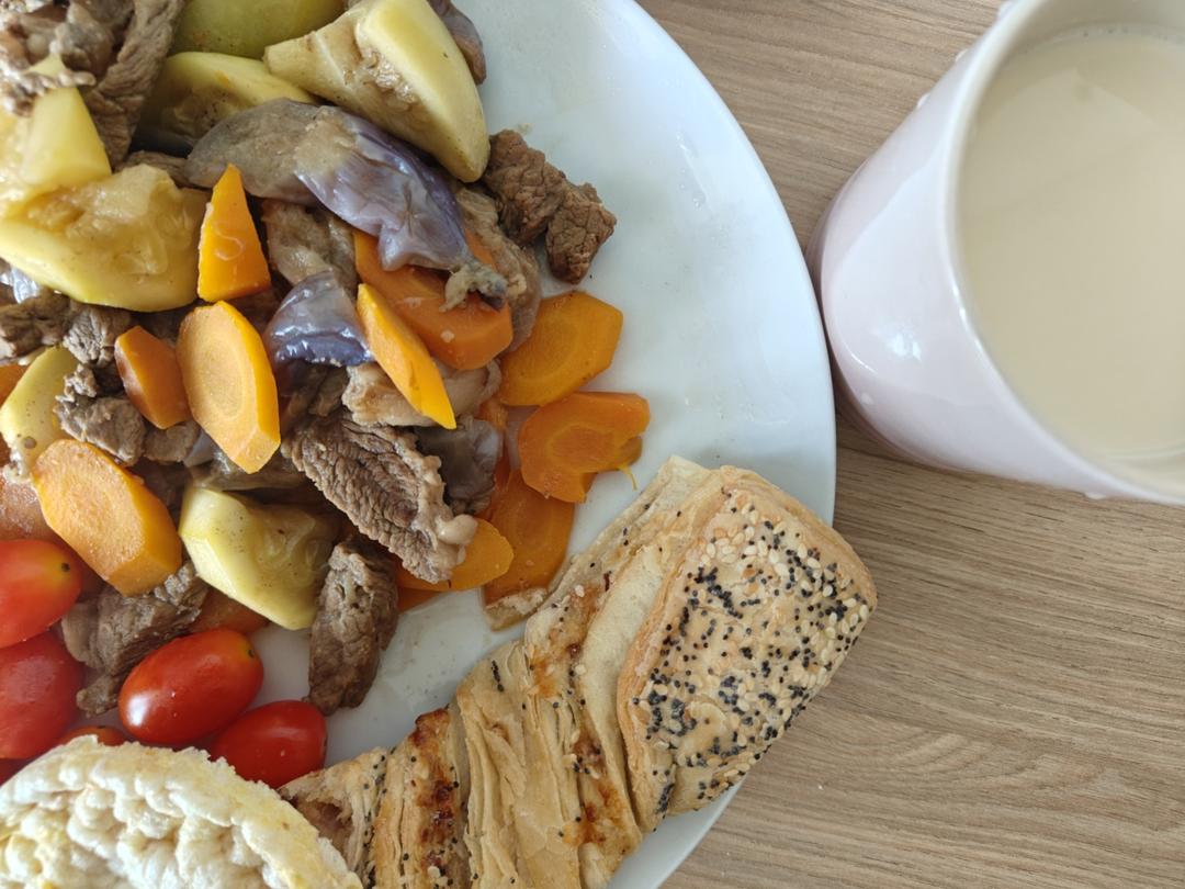 酱油大料炖长条紫茄子角瓜胡萝卜牛眼肉