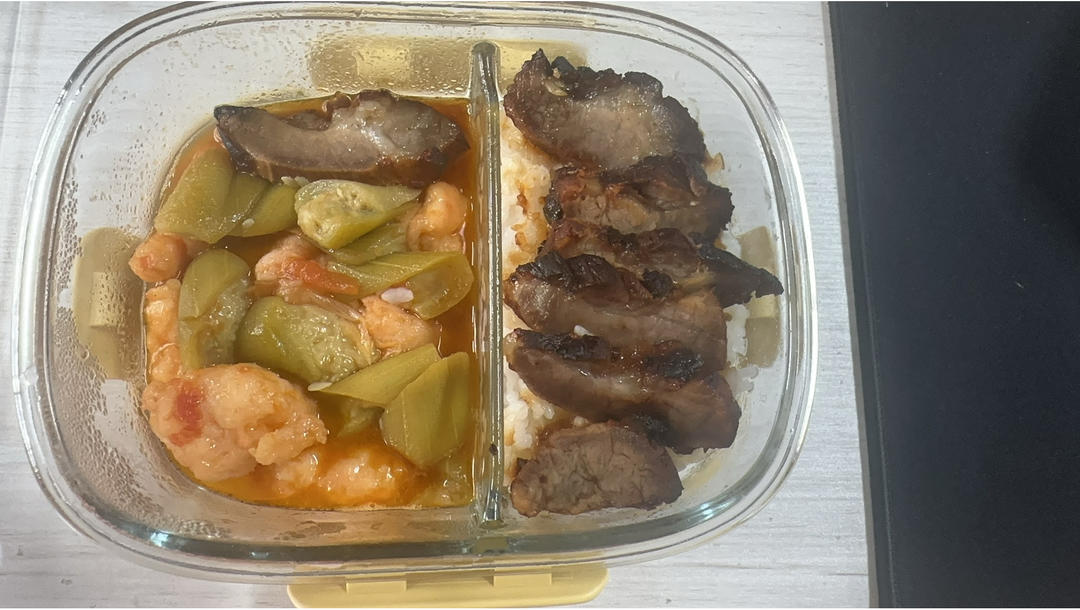 叉烧肉 和 丝瓜虾滑汤