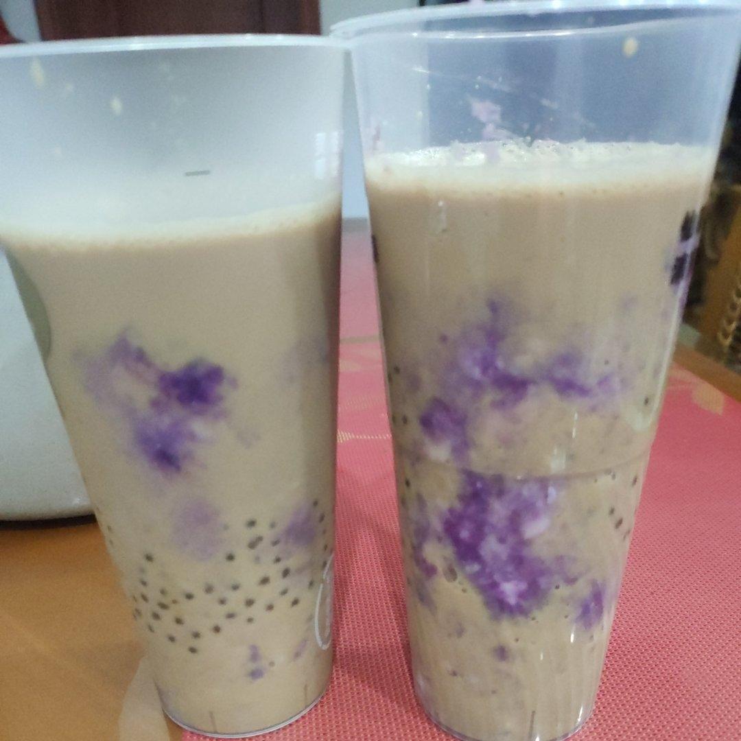 晚饭后做了两杯奶茶,等儿子下班回家吃