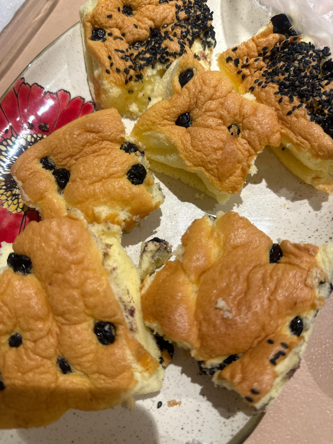 切开的是用的土鸡蛋,150°烤30+10min,没及时脱模,回缩了。没切开的是用的大个红皮鸡蛋,150°烤50min。#...