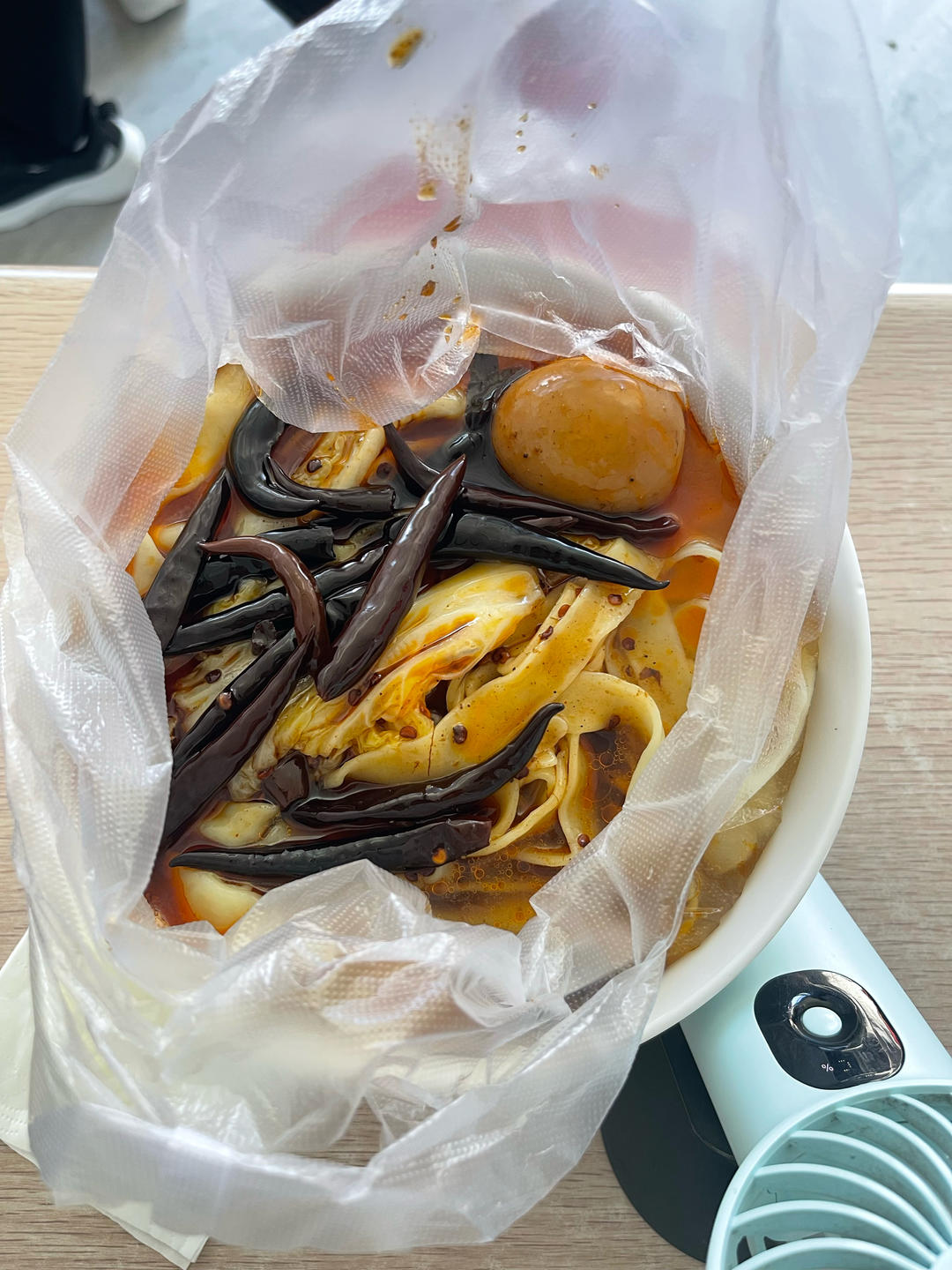 20250908早餐打卡2047:糟海鲜拌面,咖啡。早餐中国;