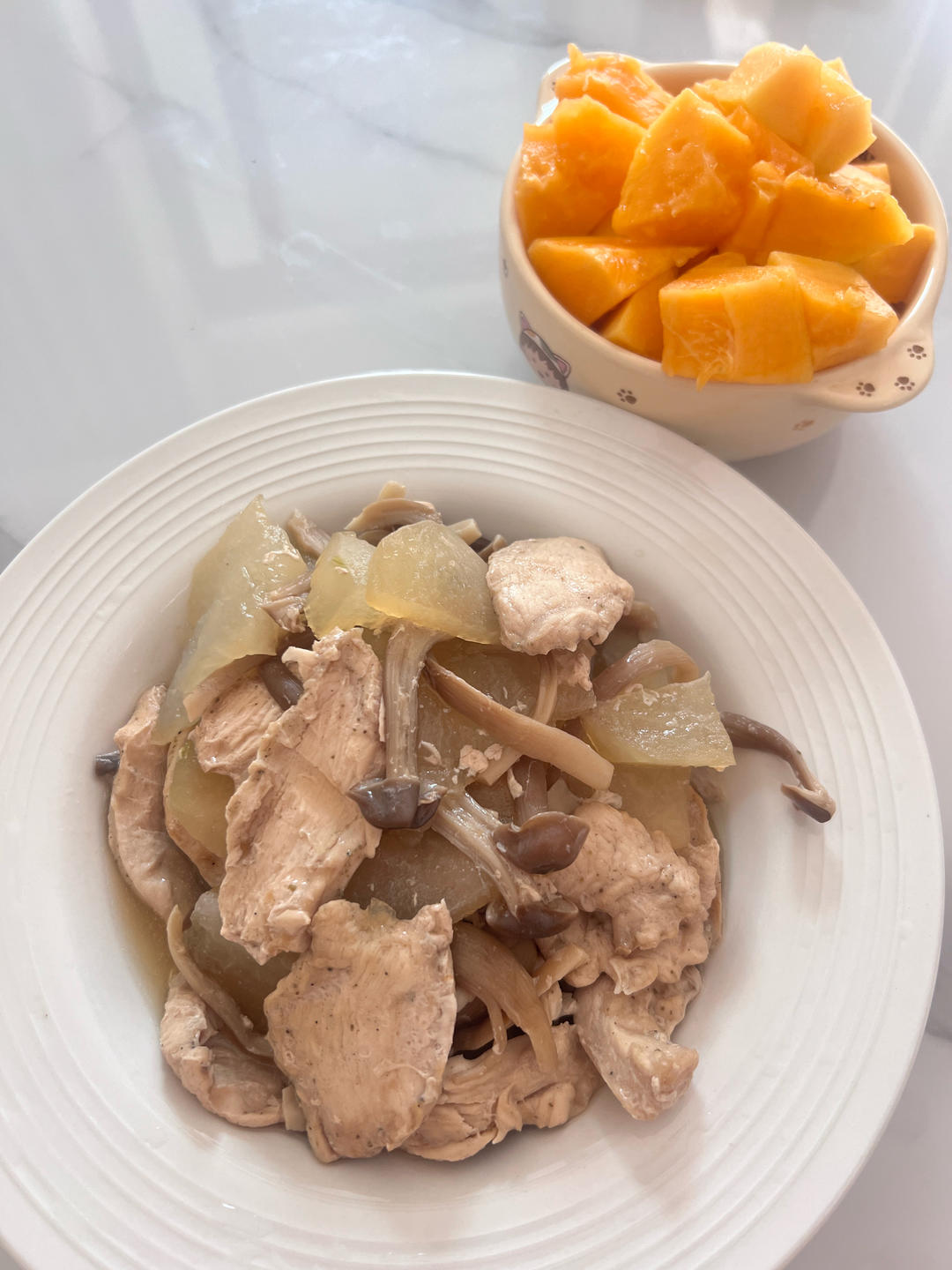 虫草花冬瓜蒸鸡+苹果炖汤