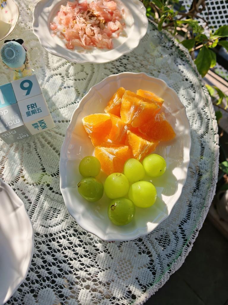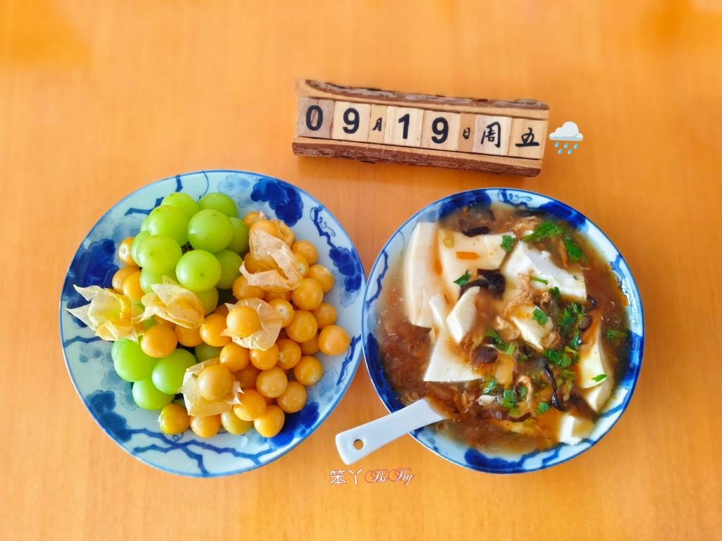 今儿有事儿,某小的早餐只一碗豆腐脑,一盘水果~