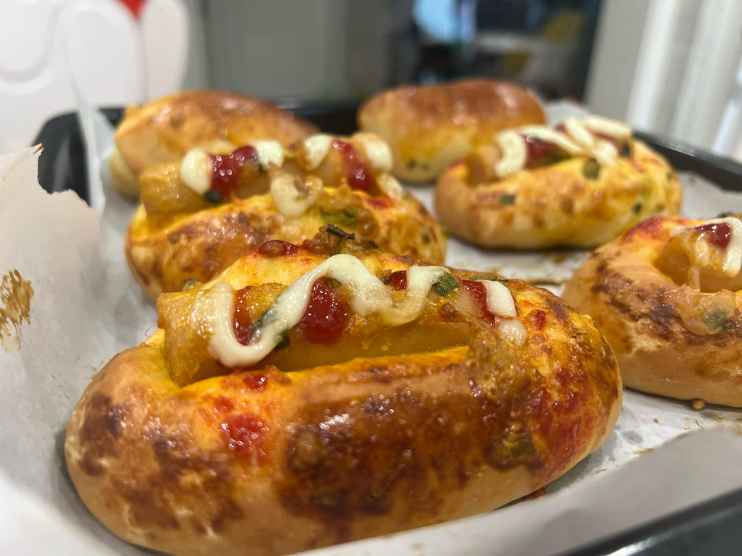 榴莲乳酪包,烤之前真的像一坨坨饱满的榴莲肉😃😃