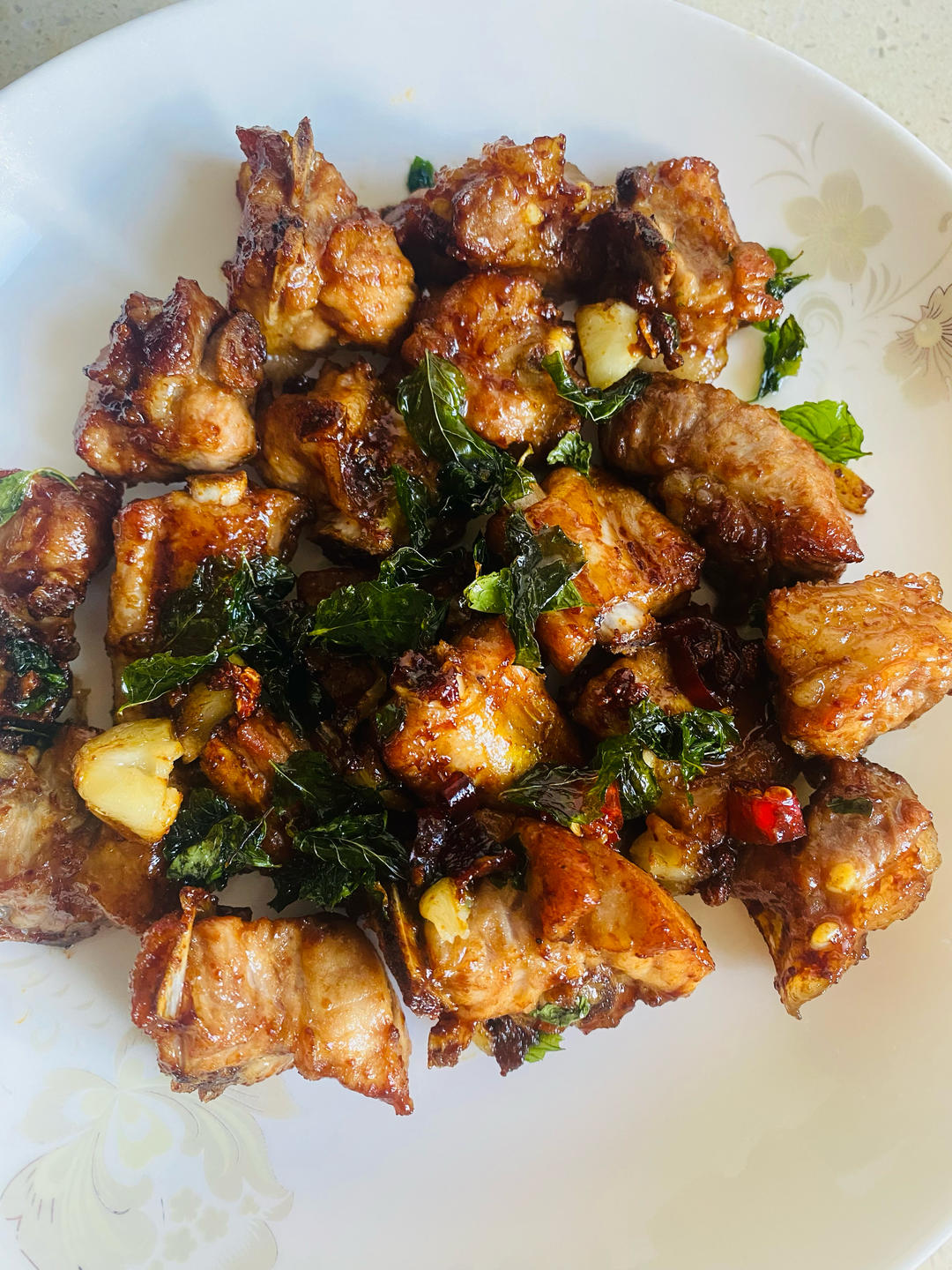 自家种的薄荷,收成有点少哈哈,所以薄荷叶量不多,但是阻挡不了这道菜的美味,食谱不错,我儿子说我厨艺有提高了,哈哈😄#午餐...