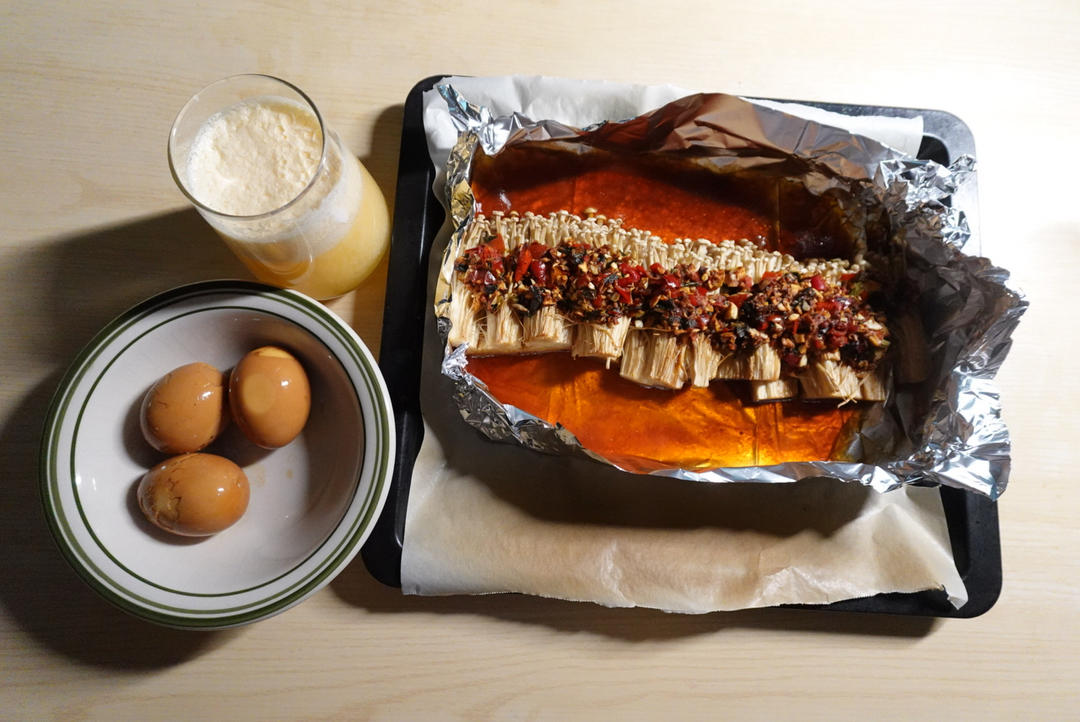 家里刚好有一包金针菇,做了烤蒜蓉金针...