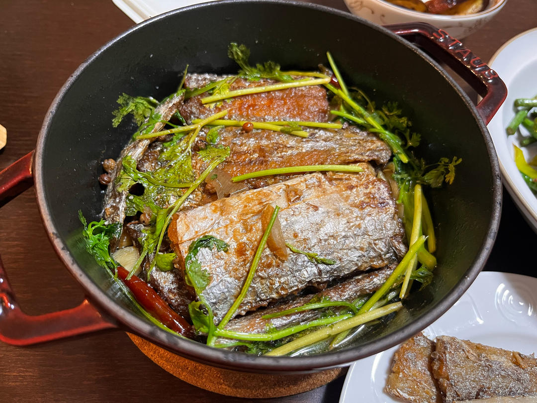 潮式酸梅乌鱼、蒜蓉蒸丝瓜、炒包菜,...