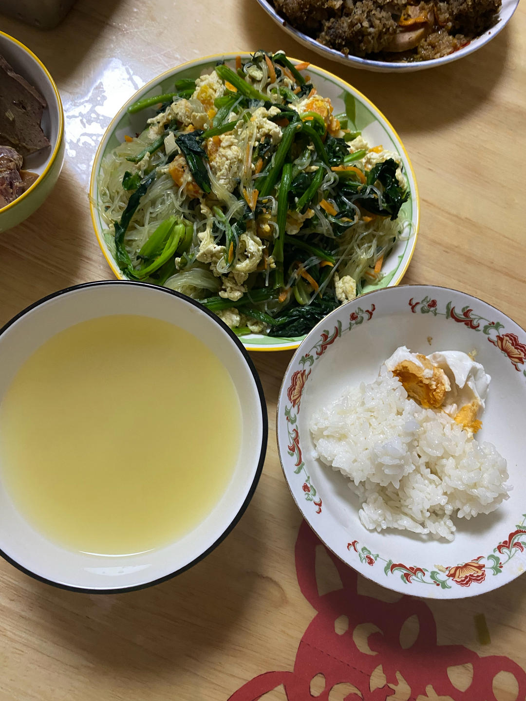 今天的菠菜粉丝炒鸡蛋