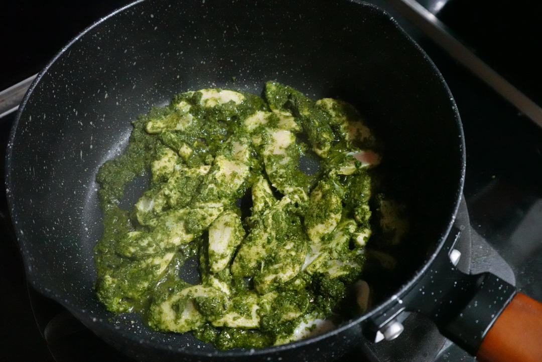晚饭做了青酱鸡肉蘑菇意面。