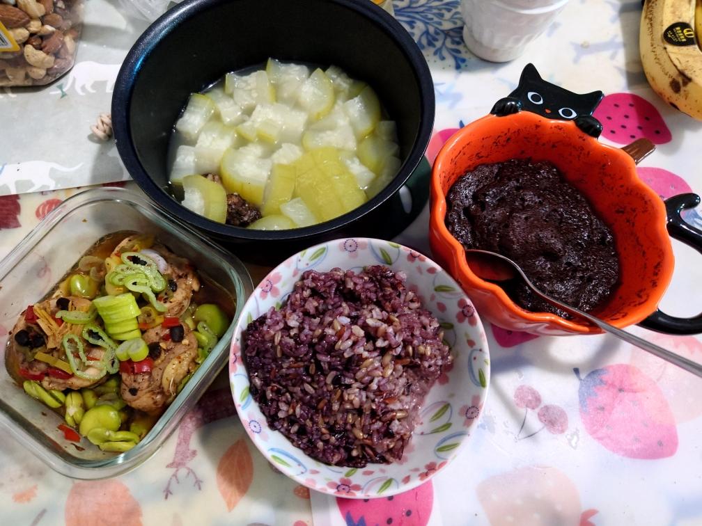 烧猪骨瓠瓜汤,醋蒸鸡,微波炉香蕉布朗尼