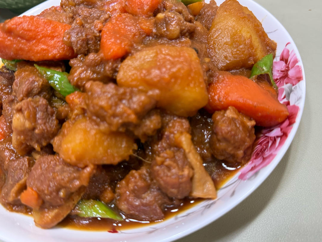 多放了一个土豆,二斤牛腩,两颗胡萝卜,搞得大米饭都吃光了。