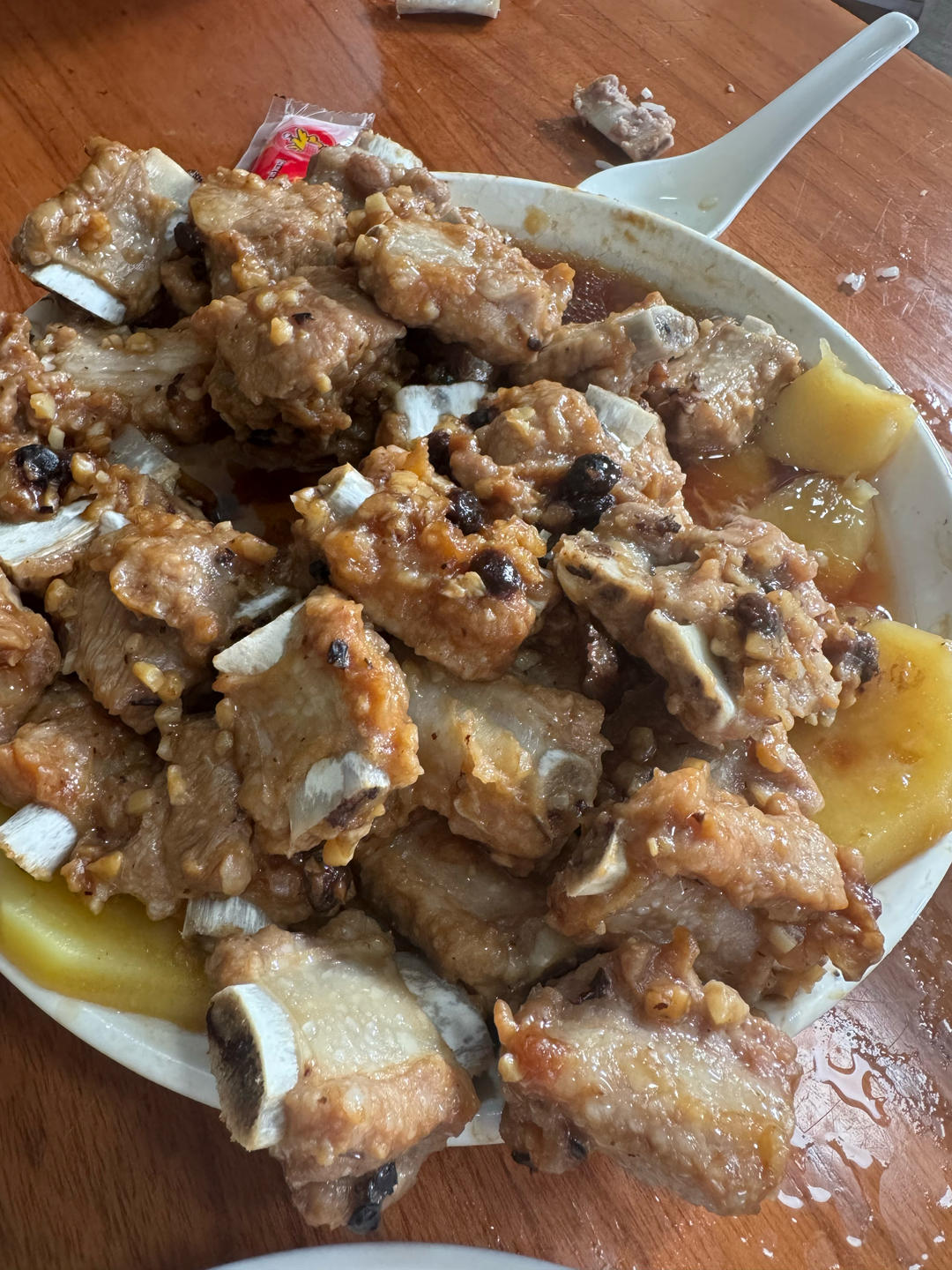 豆豉蒸排骨,排骨加盐和面粉搓揉洗干净,加水泡15分钟,沥干排骨,加盐,生抽,老抽,糖,淀粉,豆豉蒜末油爆香,腌制20分钟...