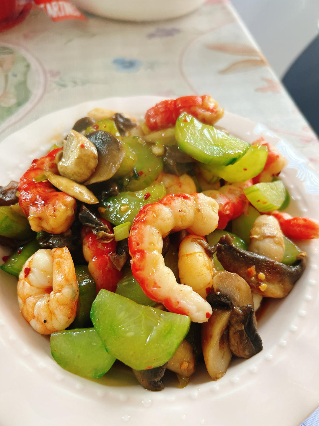 煮虾,杏鲍菇,煎三文鱼,没照相的蒸南瓜,全都有些橘色,草莓,昨天带娃们骑车,怎么还那么...