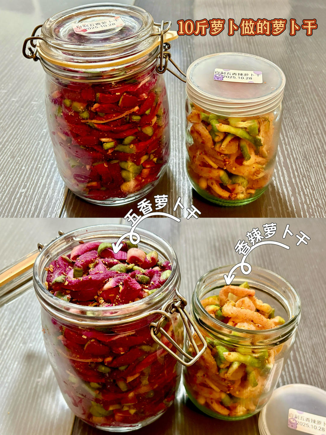 之前做的五香萝卜干很好吃,送人了两瓶,自己留了一小瓶。接着又下单了10斤萝卜做了萝卜干。这次...