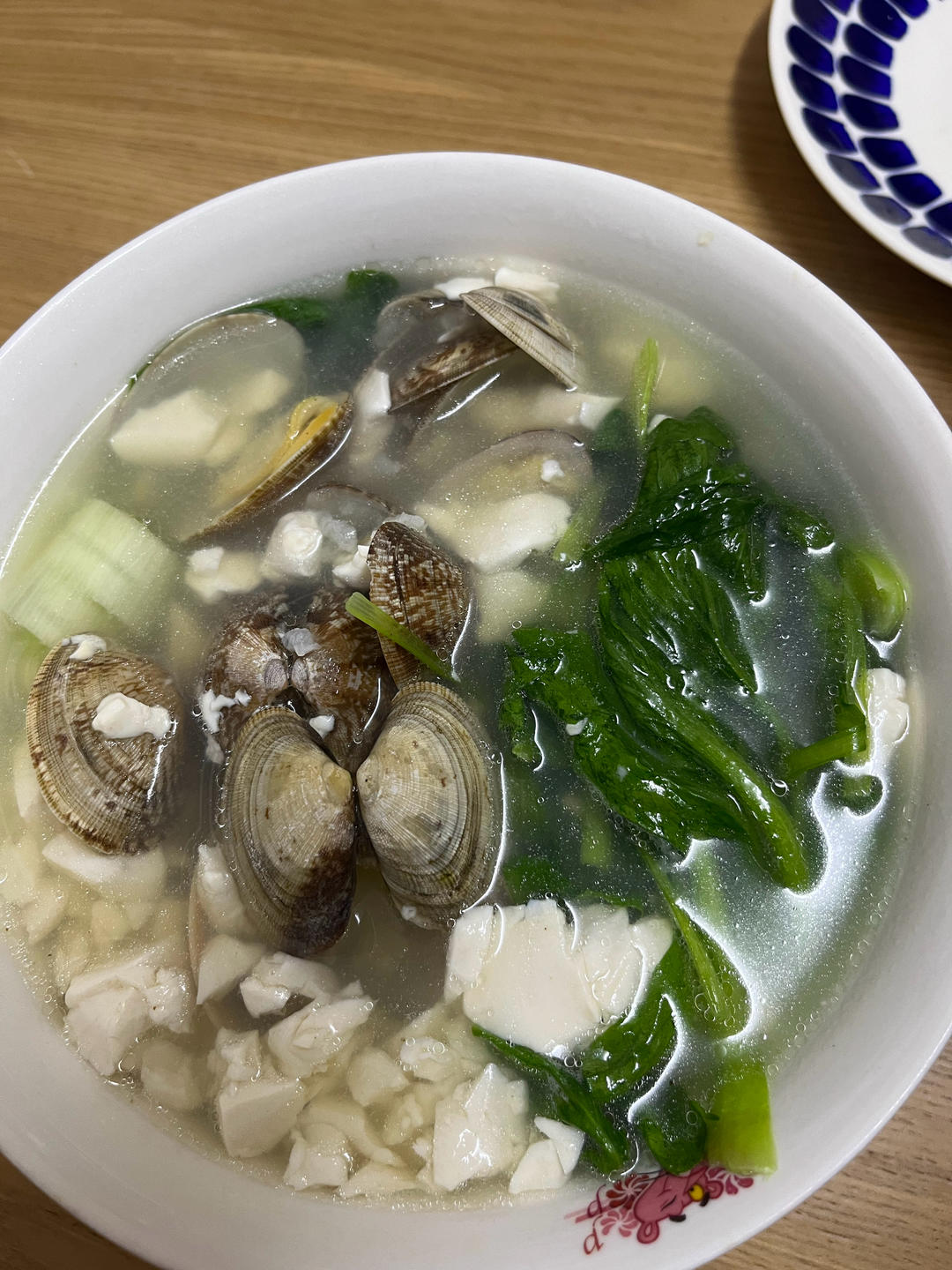 哈哈嫩豆腐不敢煎,直接先用蒜末,干辣椒加盐炒白菜梗,然后加水,煮沸加金针菇,白菜叶,一...