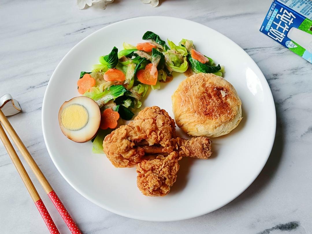辰辰早餐~炸鸡腿,豆沙酥饼,鸡蛋蔬菜沙拉