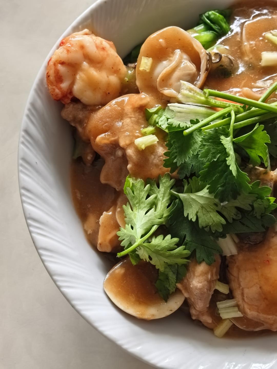 今天不上班,也没球踢,于是中午解锁了期待已久的海鲜捞面,Q弹的面条裹满浓郁汤汁,大虾、蛤蜊、生蚝、鱿鱼、前栏肉满满当当,...