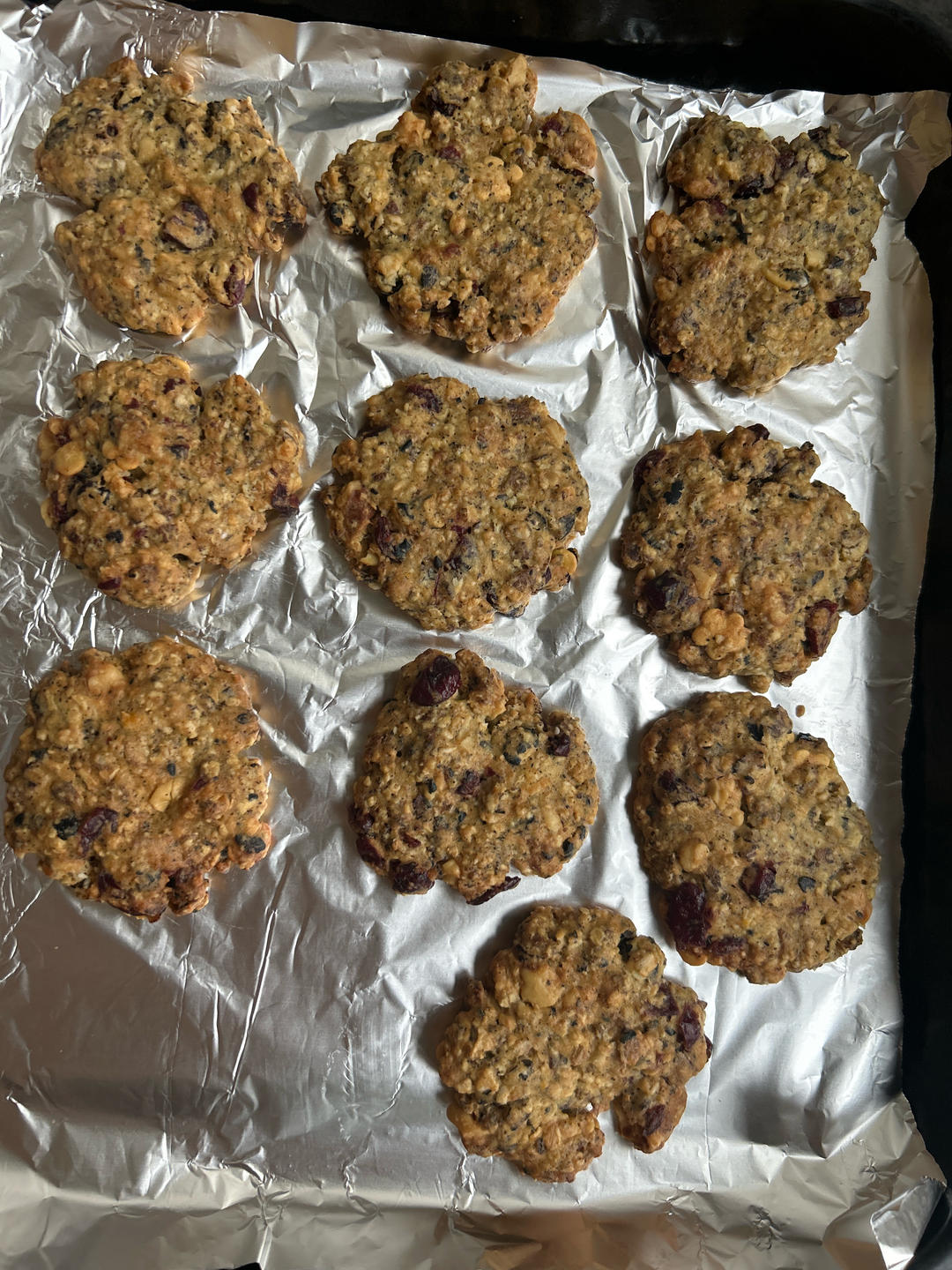就是喜欢山姆这个蔓越莓燕麦曲奇,配咖啡绝了。没有纯燕麦,用的山姆那个五黑,所以颜色黑...