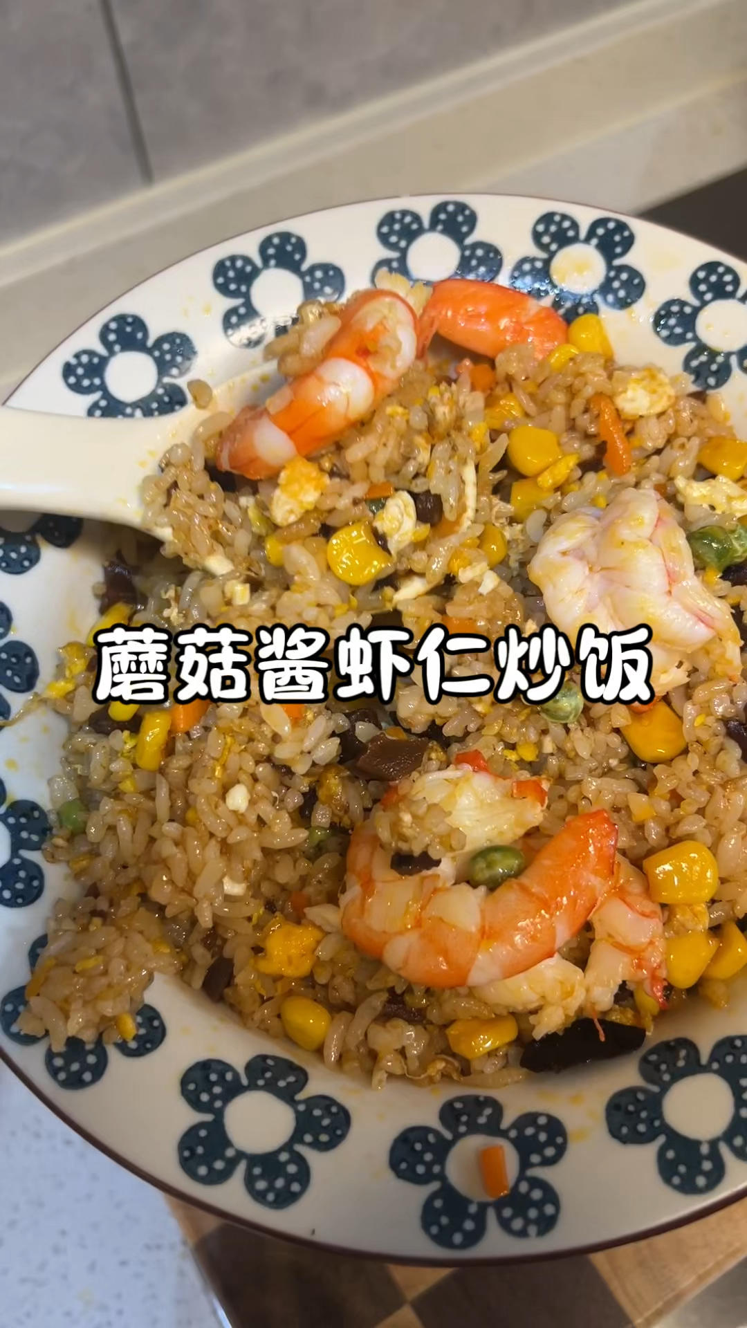 蘑菇酱虾仁炒饭,营养全面简单好吃