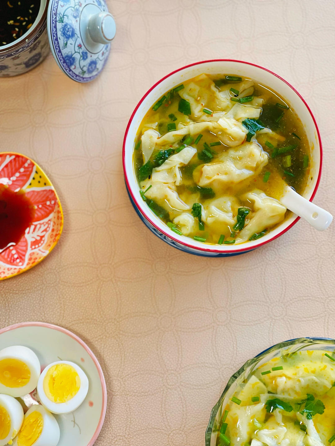 馄炖汤加点我的灵魂辣椒油,真当味极鲜😋