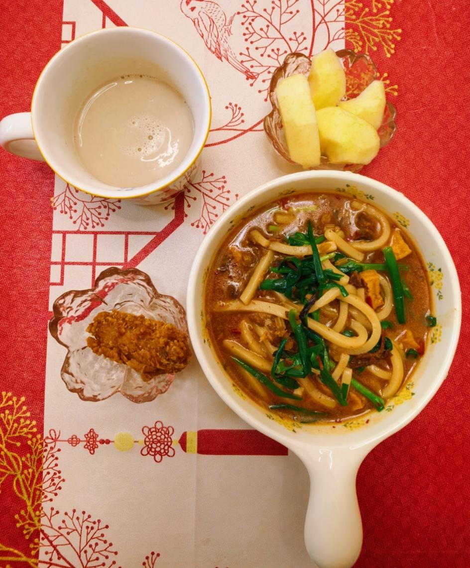 Day378.小锅饵丝+炸鸡翅+苹果+葡萄干豆浆