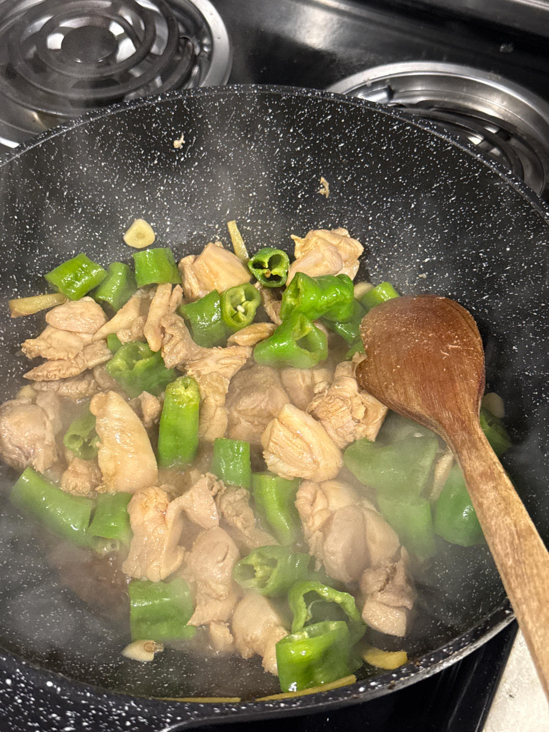 买的麻鸭回来剁块时发现有点肥,就在焯水后,挑出来皮下脂肪厚的那几块,烧热锅先把鸭油煎出来再炒剩余的鸭肉...