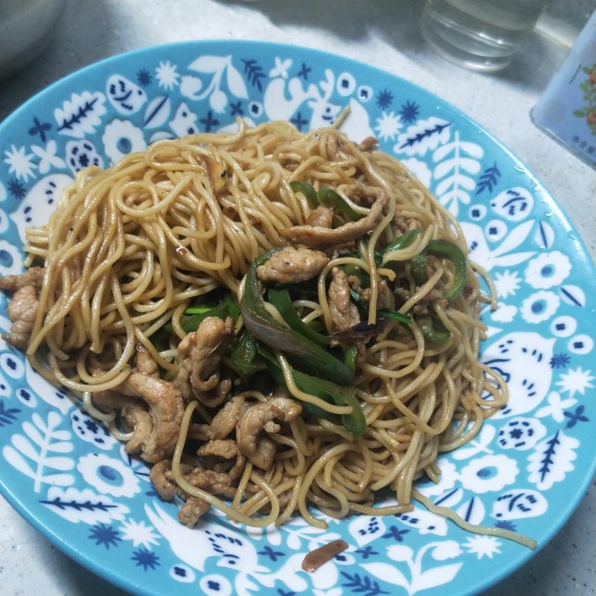 板筋辣椒洋葱炒面+即腌辣白菜。用之前做的辣椒炒板筋相同的做法做的炒面,辣白菜用的金刚山...