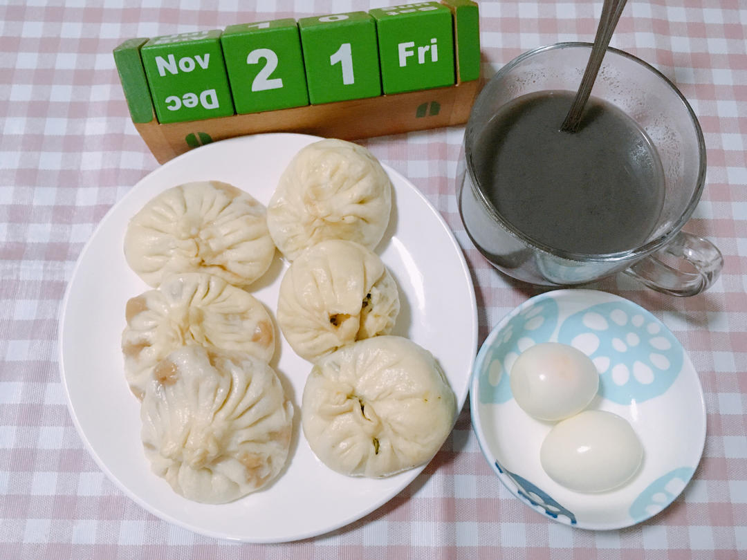 G9S1.W12Day5.猪肉包子并素包子加煮蛋🥚配黑芝麻糊