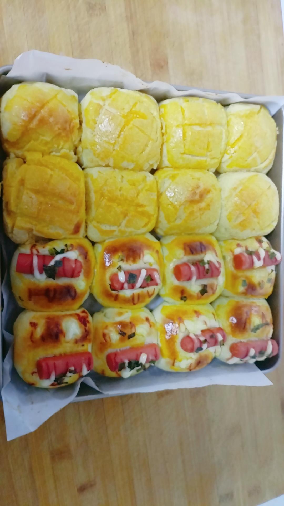 菠萝皮(四个小餐包):黄油24g,白砂糖20g,奶粉7g,蛋液12g,面粉40g