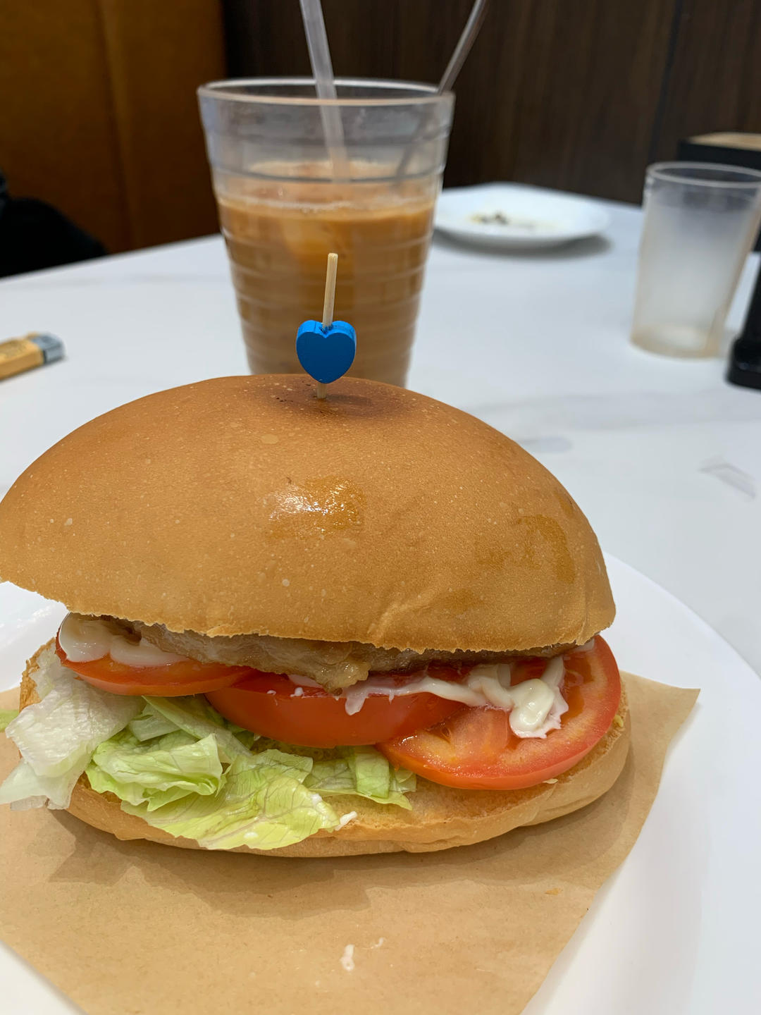 冻奶茶,猪扒包。