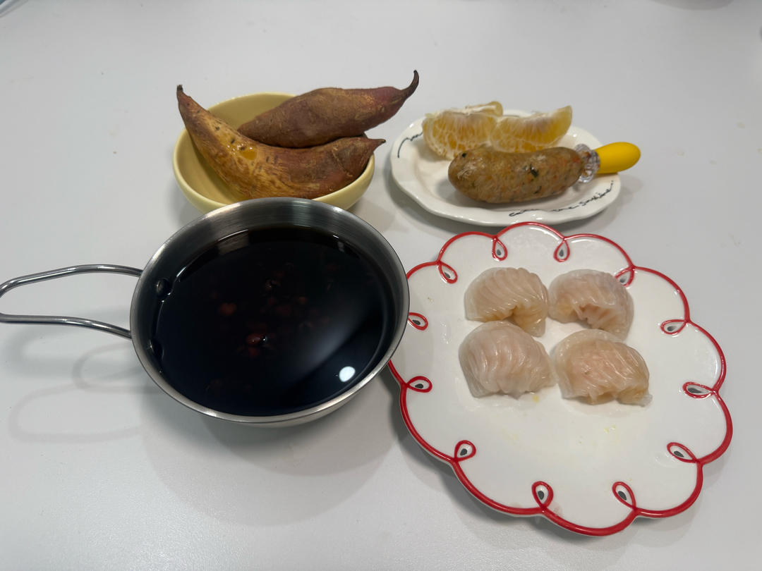 周三 红豆汤 虾饺 烤蜜薯 糯米肠