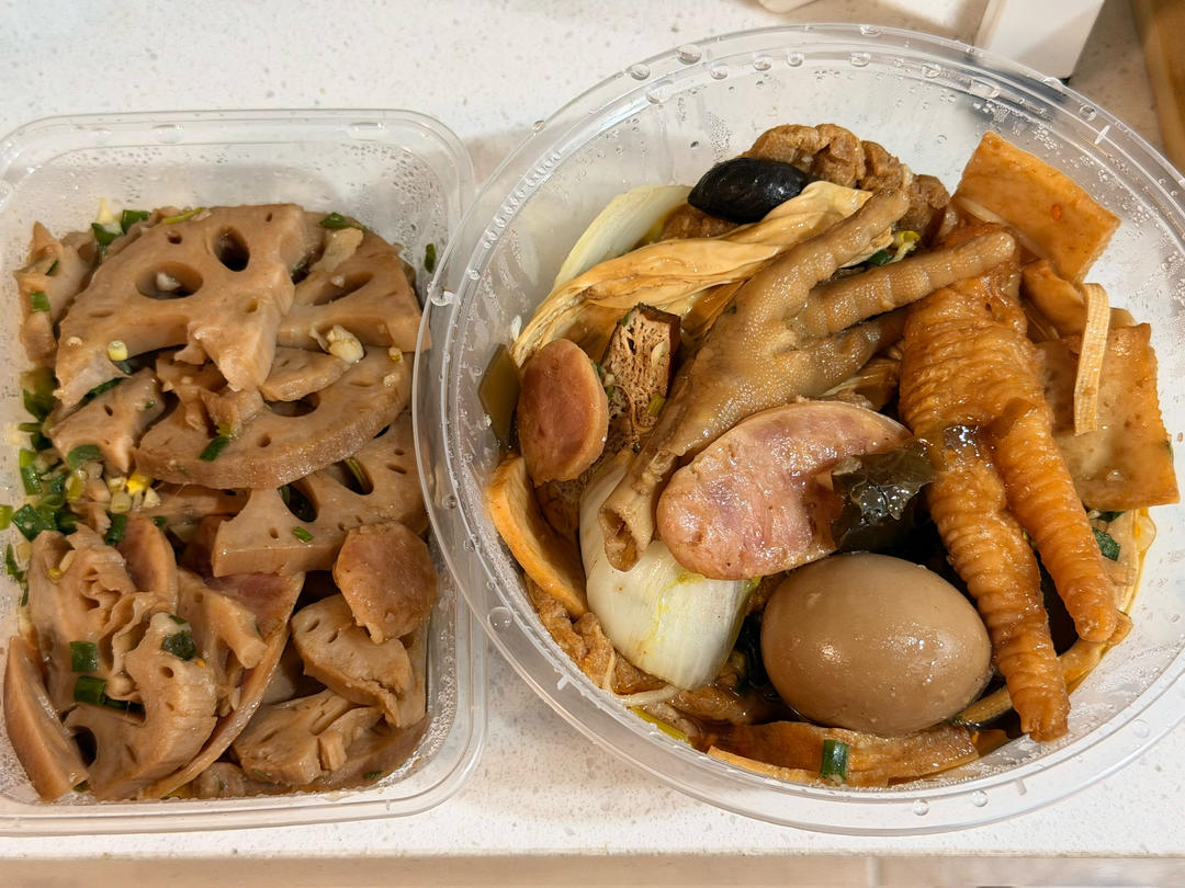 中午骑车去买了一家卤味,其实还买了卤粉,但是太饿了,在店里就吃完了。