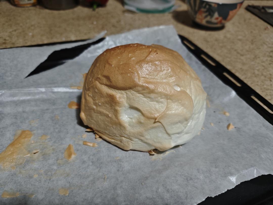 首次跟做成功!前期步骤无误,但首次烘烤(150/180°C,16分钟)未熟。盖锡纸并提高下火至200°C再烤10分钟后成...