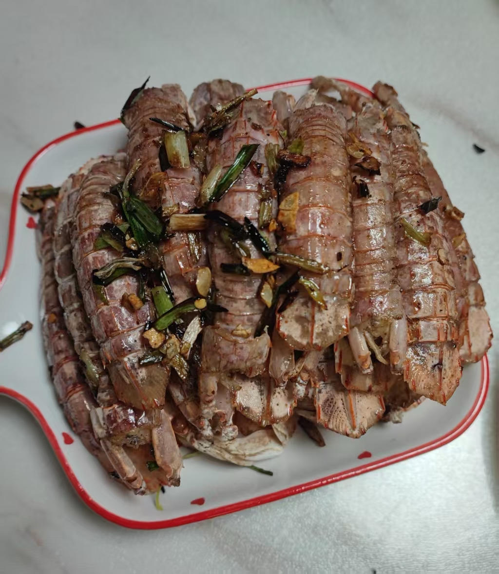 放了些蒜蓉辣酱,甜面酱,手抓饼的辣酱~爱吃辣,几勺红辣椒面~好吃好吃能香死个人,怕弄不好,只解冻了一只鱿鱼🦑#宵夜•20...
