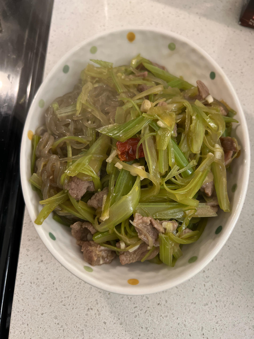最后放了一点点味极鲜和蒜末,太好吃啦!
