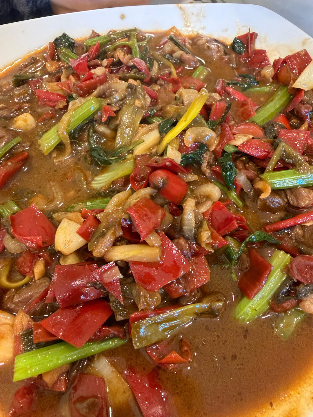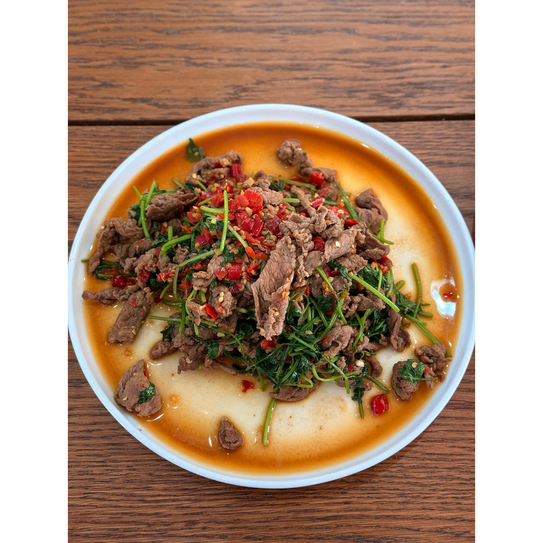 电炉火不够大,有点出水了。感觉火好的话牛肉可以更嫩。超级下饭的菜,饭秒光😋...