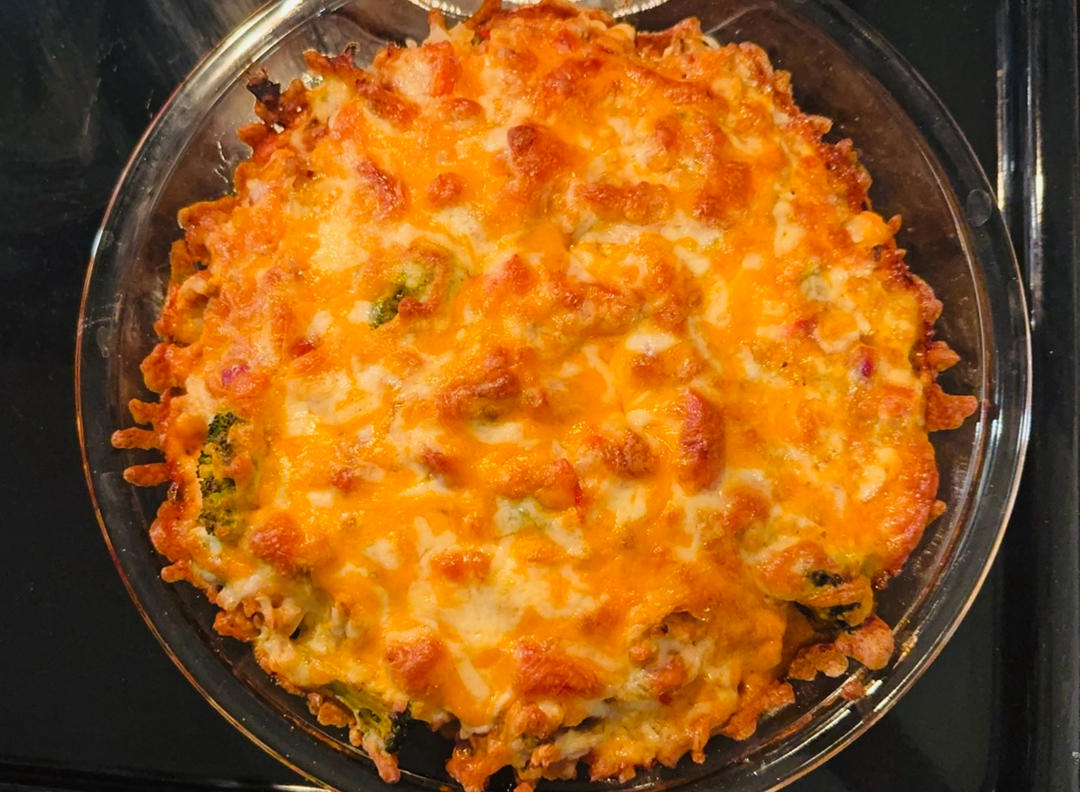 用了洋葱、西红柿、白蘑菇、西兰花,撒了厚厚的芝士碎,感觉营养、热量都爆棚
