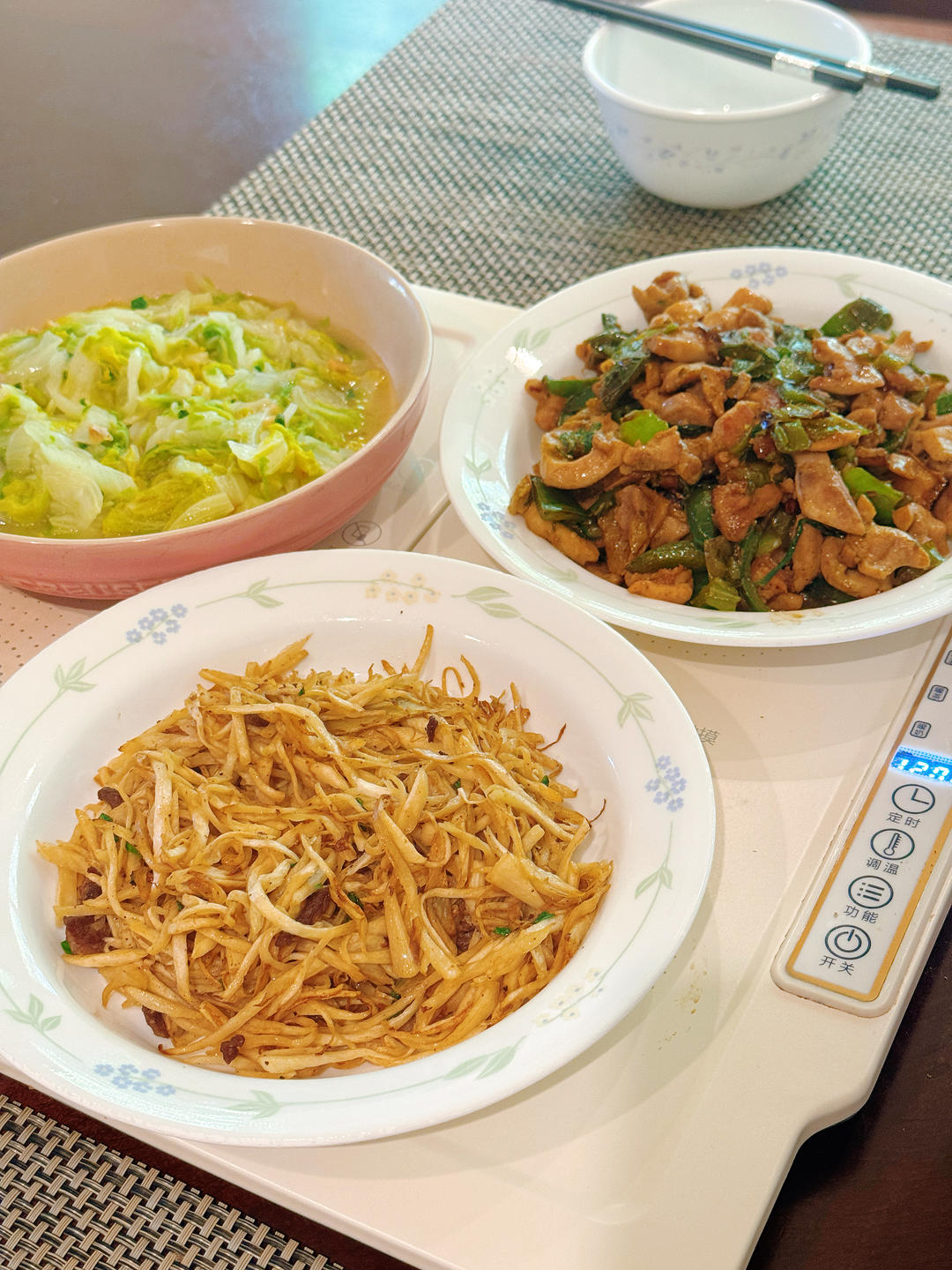 红烧牛肉土豆胡萝卜,凉拌笋丝,凉拌🥦