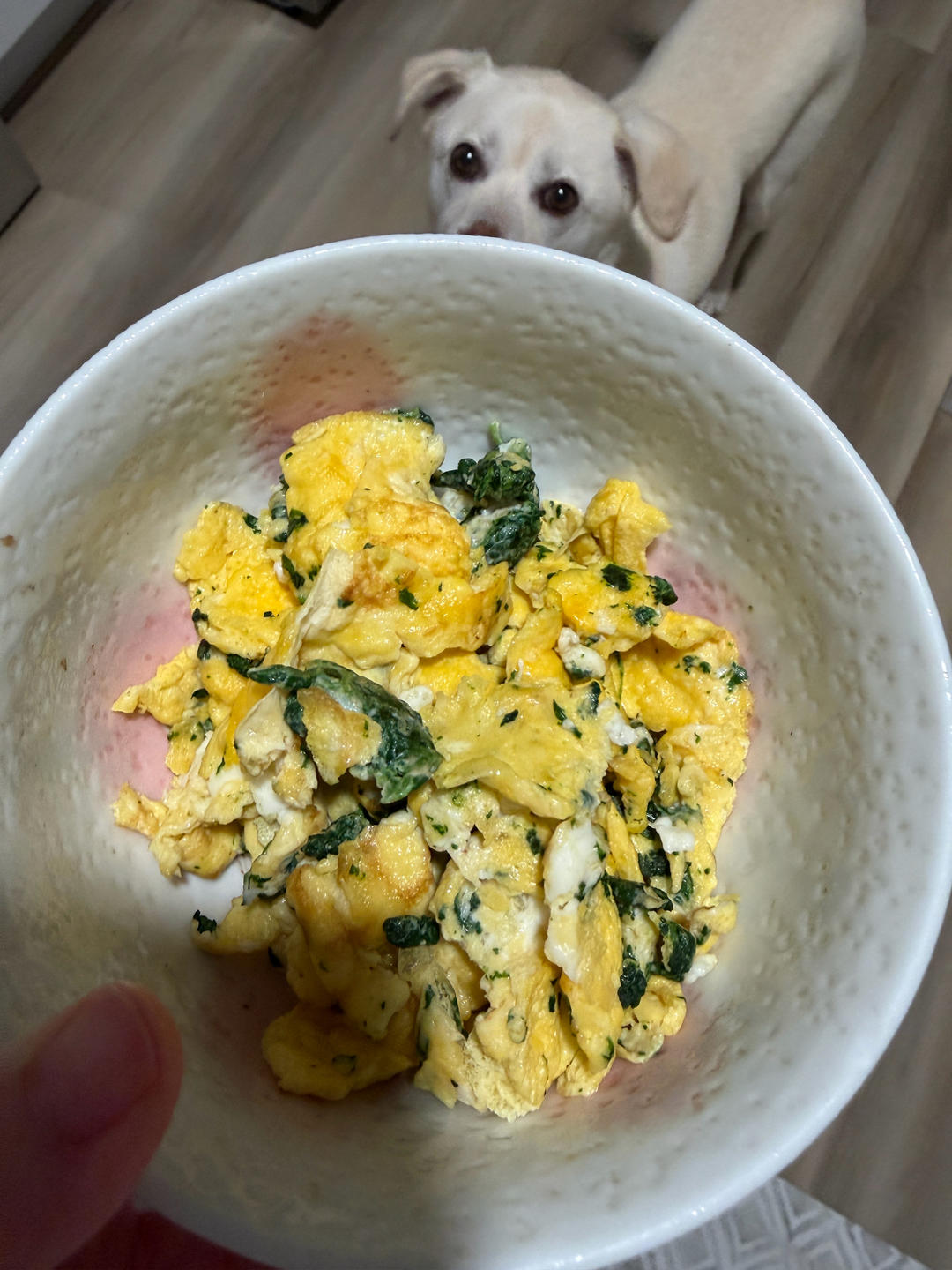 遛狗顺带掐了点荨麻,焯水后炒蛋,有股特别的香味,性温补肝肾,下次还采😬