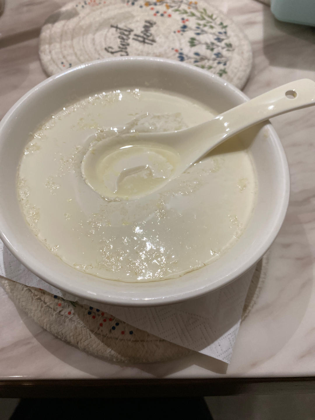 尝试一下做姜撞奶,刚开始没凝固,以为哪一步出问题了,可能太心急,再加热了一会就凝了,感觉跟外面吃的一样。多动手就可以吃到...