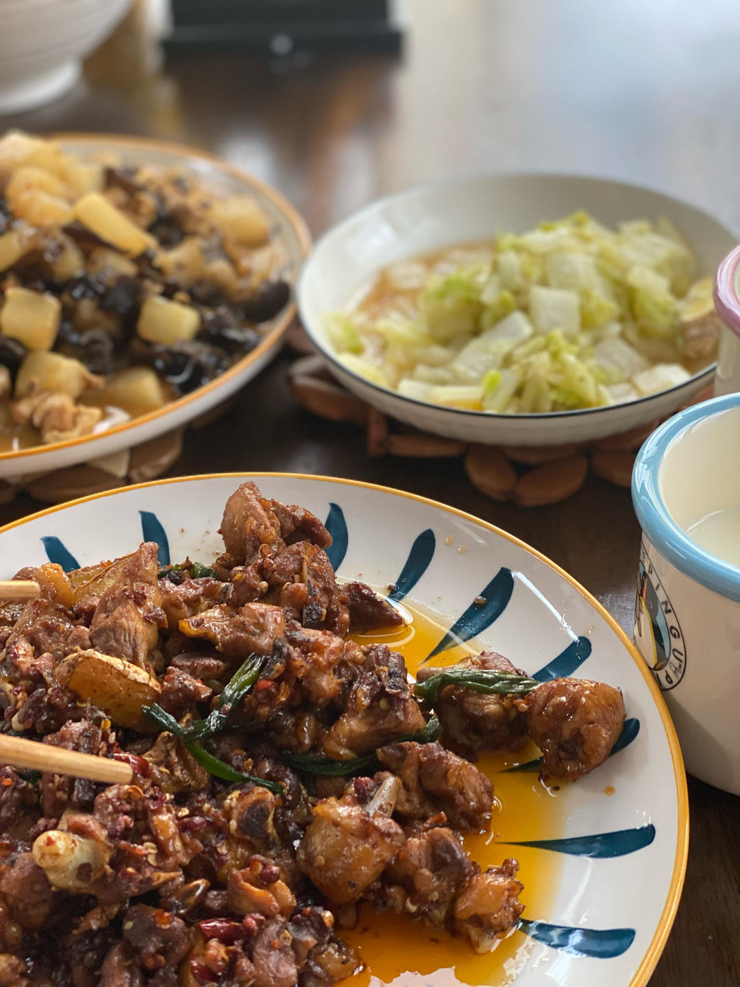 吃到一半才想起来拍照:香菇蒸滑鸡,菠菜虾仁,还有一个拌牛油果