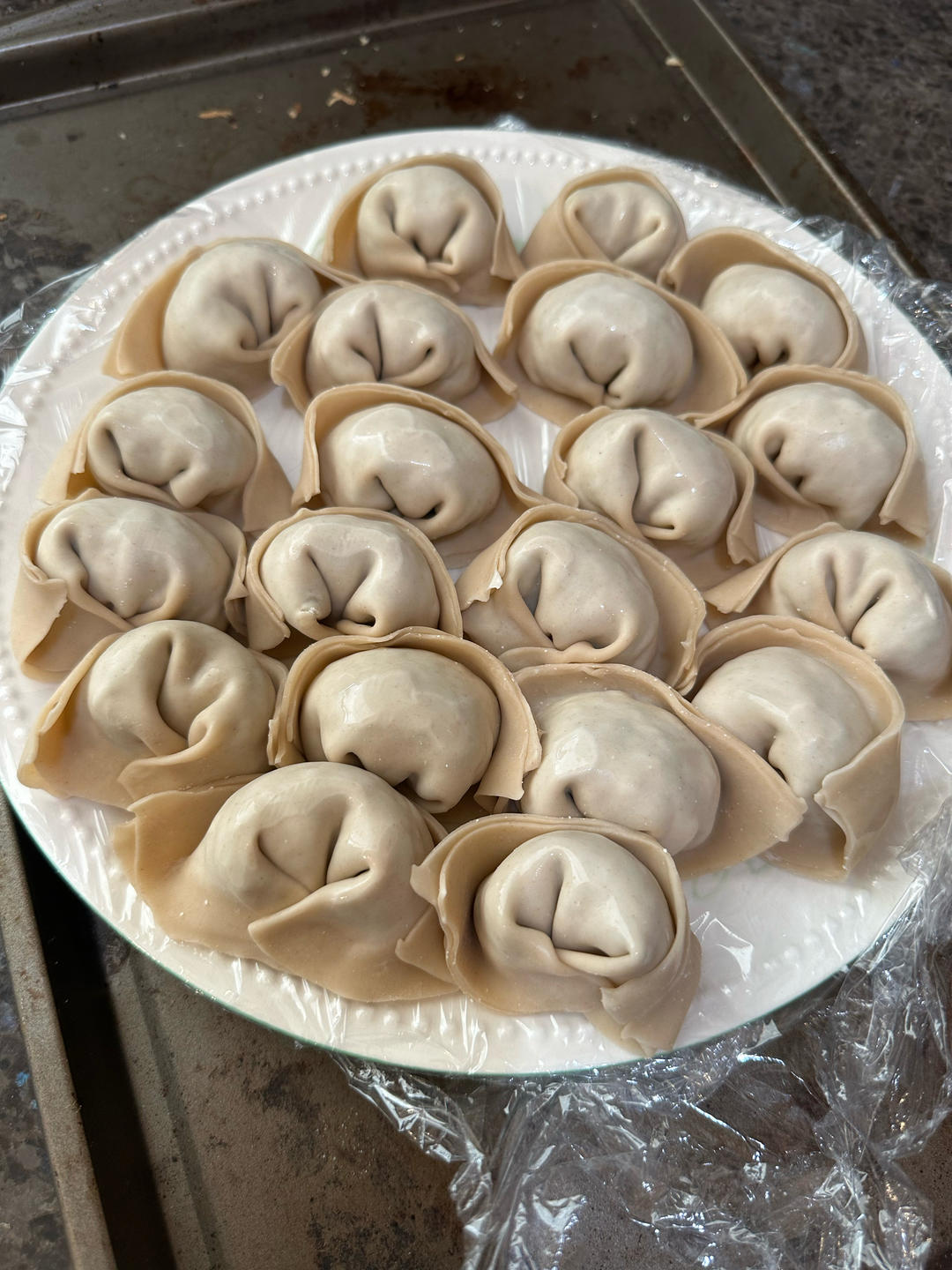 用的这个课程的菜肉馅配方,再加一点点香菇,味道很好,咸淡适中。