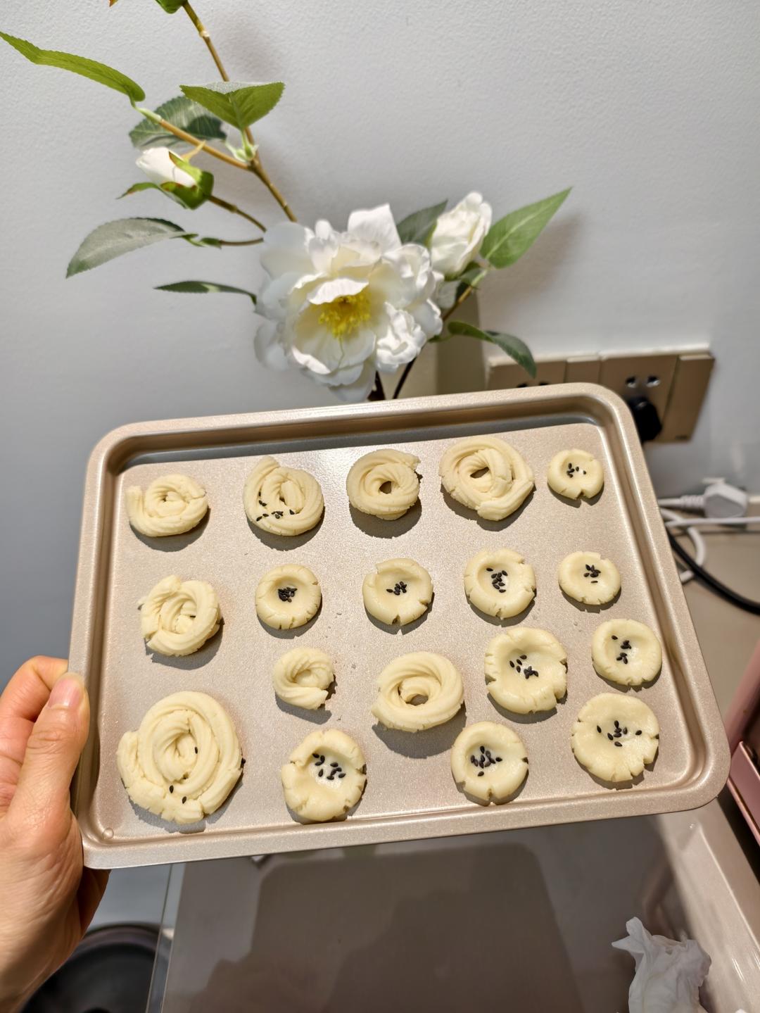 交作业啦!第一次做曲奇,超级成功,用了内蒙黄油,做出来的也很香!!!很棒啊!!!稍微减了糖...
