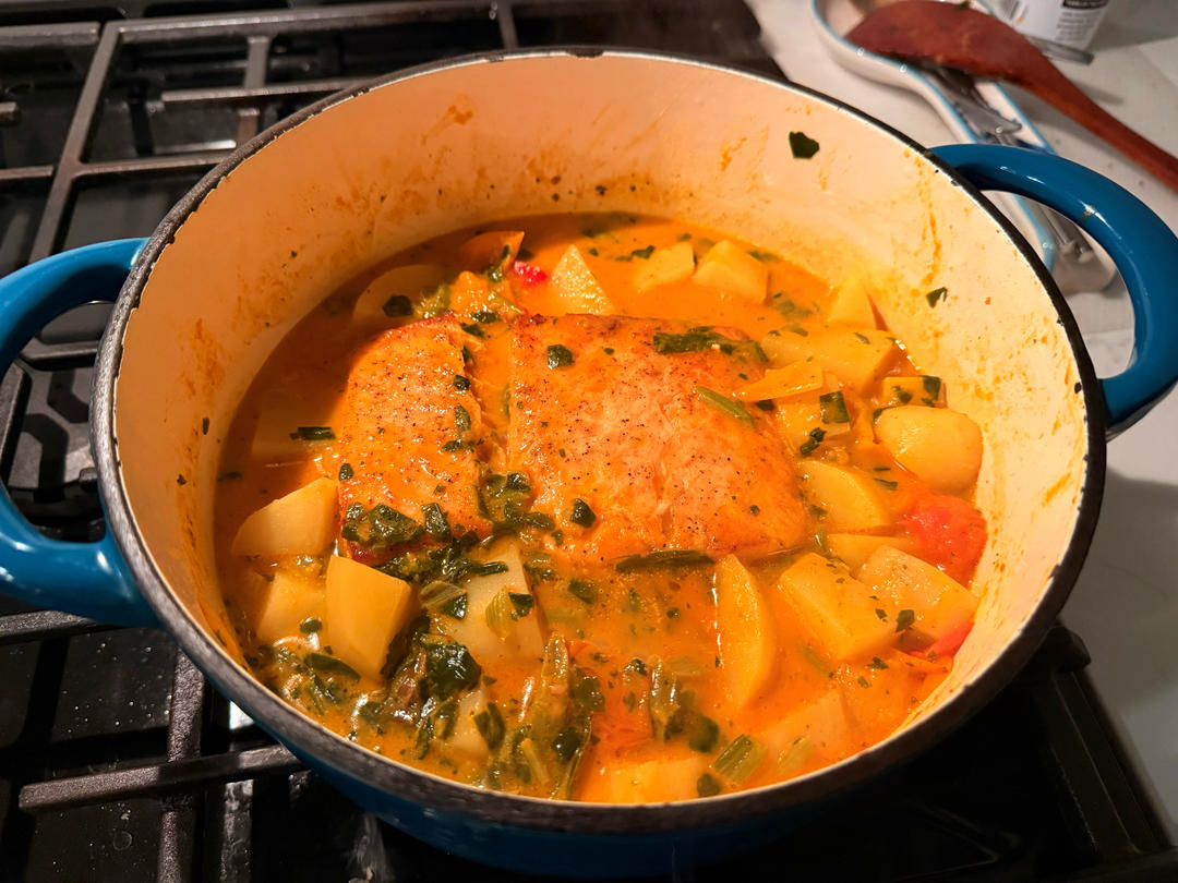 震撼美味!加了六勺番茄酱和两勺大公鸡牌辣酱,一些白糖和意大利混合香料(蒜粉可以多放)三文鱼一定要铸铁锅单独煎(大火两面各...