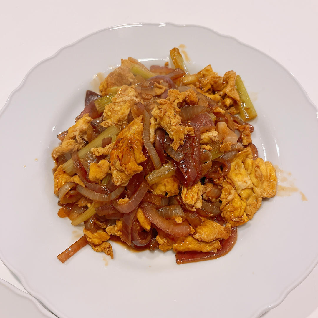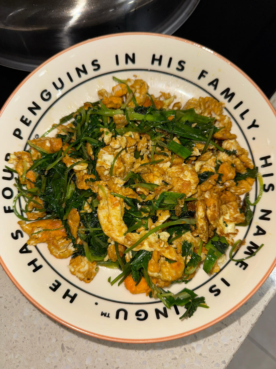 四个鸡蛋炒二十八缕香菜➕大蒜叶好好吃🤤就放了油和盐味道香香的,洗菜花了半小时🙊