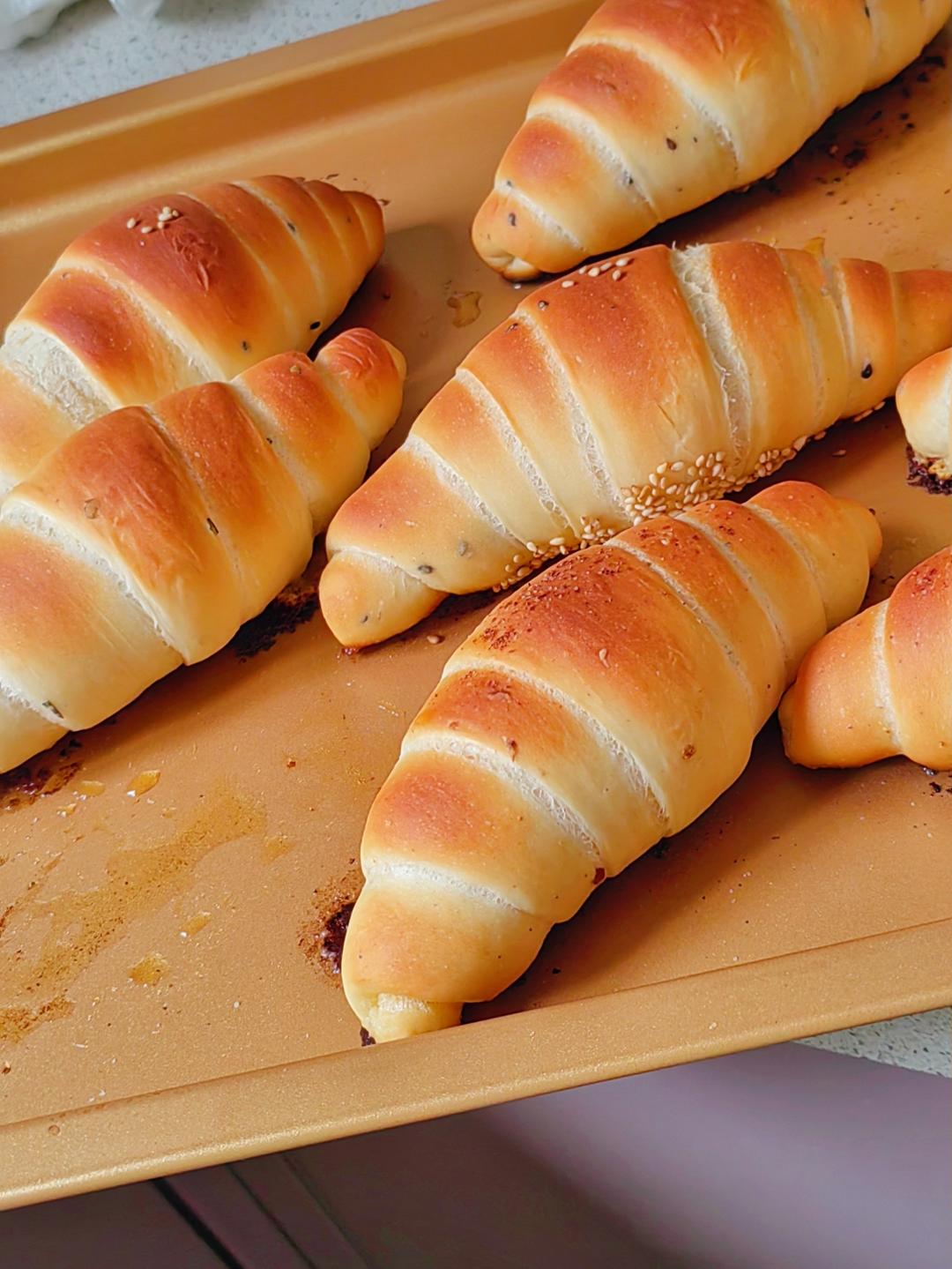 全黑麦面粉,发酵时间不够,半小时空气炸锅没有全熟透,外皮酥脆好吃😋