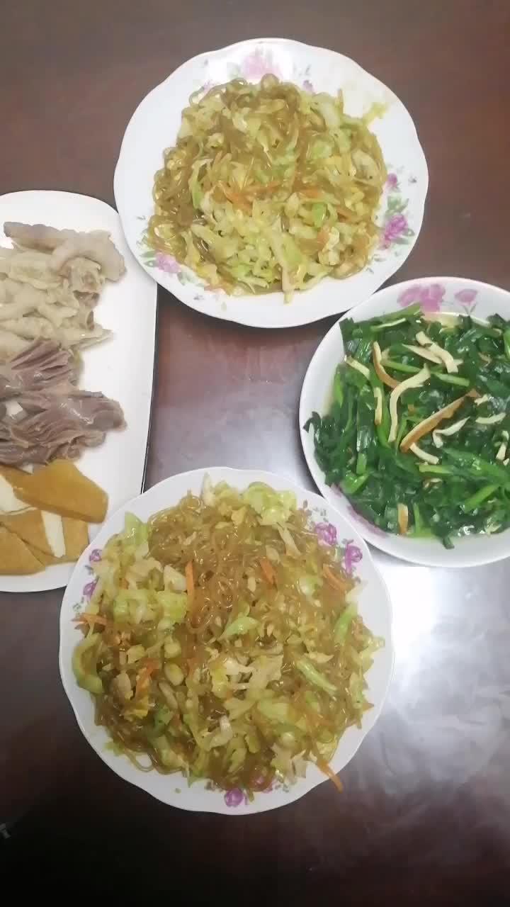 包菜肉丝炒粉丝x2 豆干丝炒韭菜 糟卤件