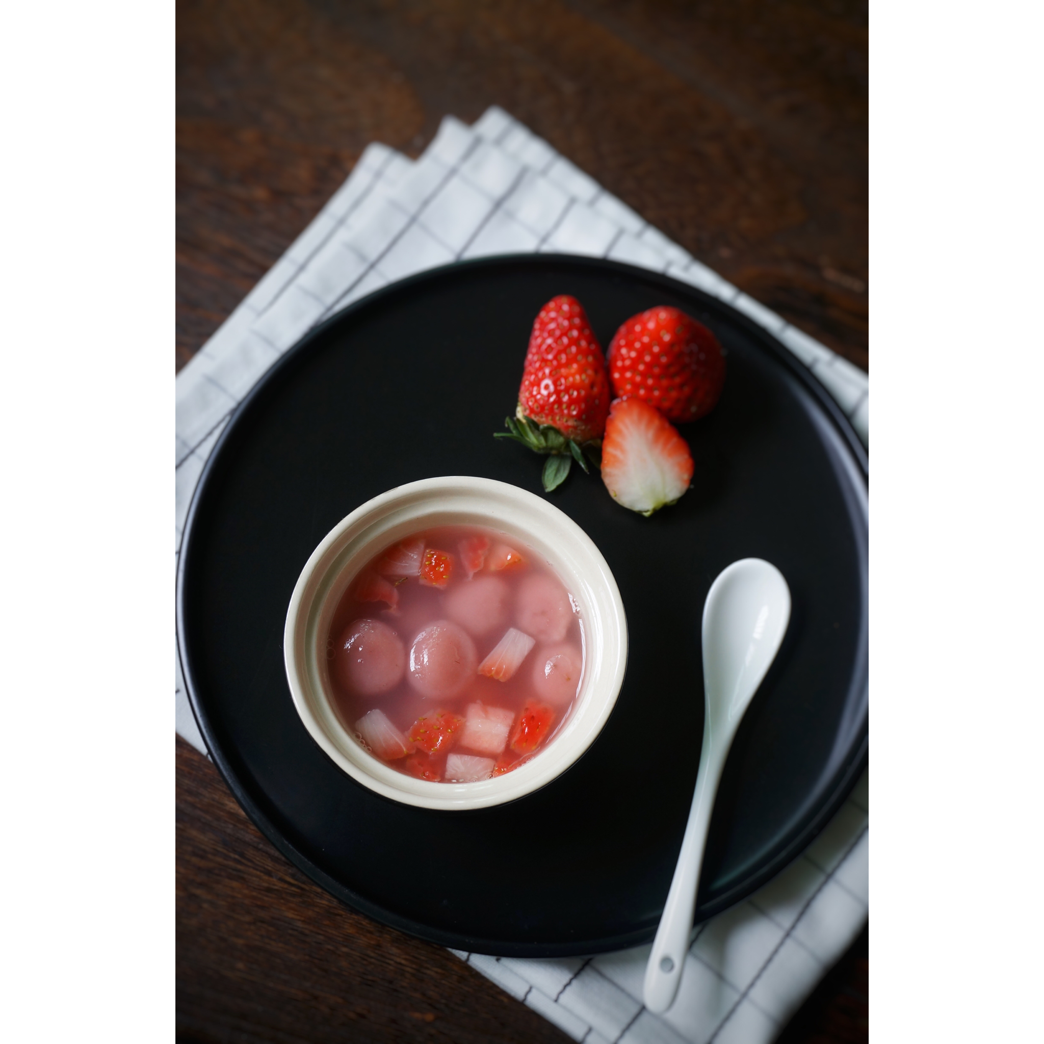 我这这老妈是不老的,虽然当上了丈母娘,可少女心还是有的。草莓汤圆,酸甜软糯,我喜欢吃,你们呢?谢谢老师@