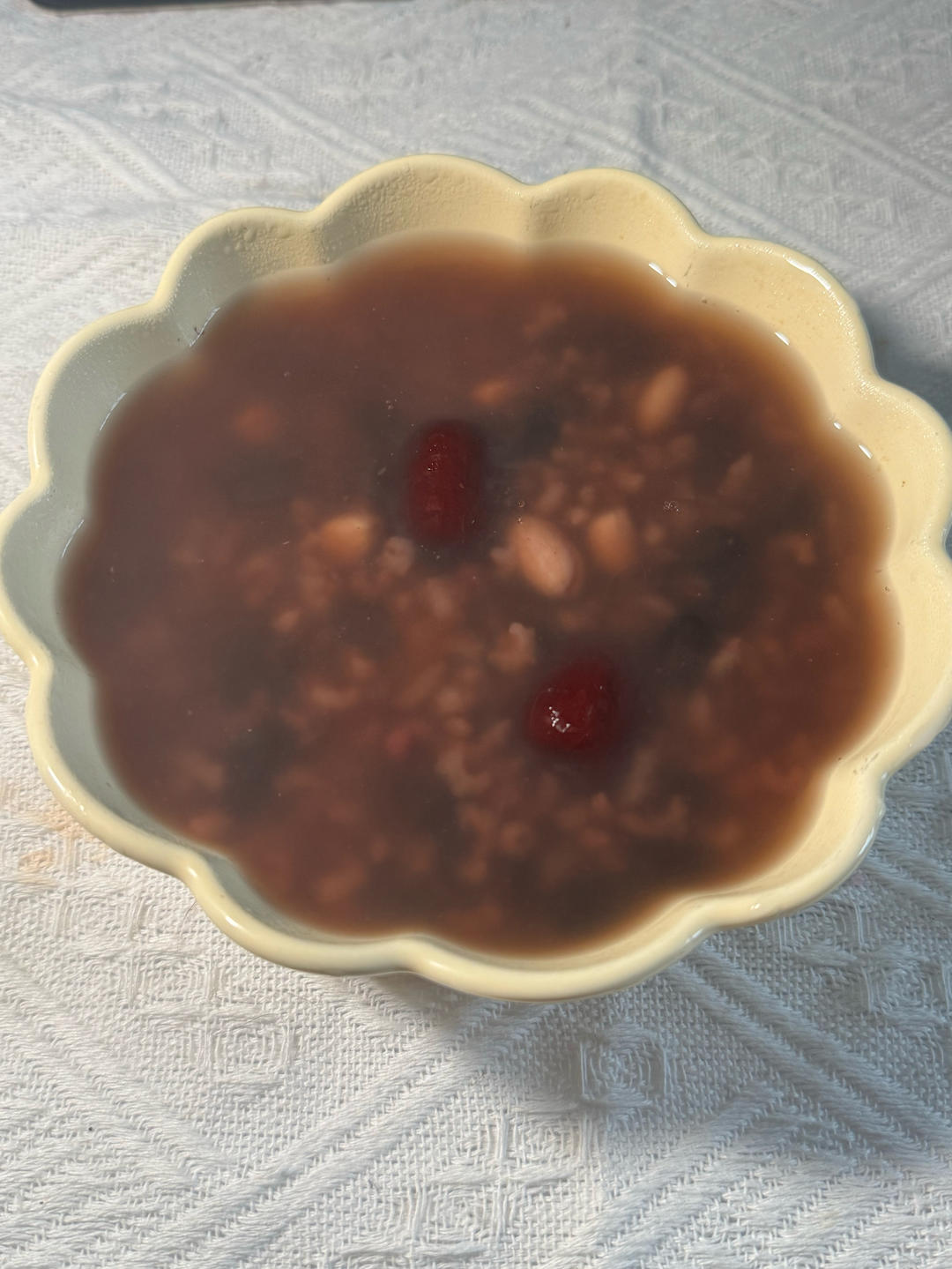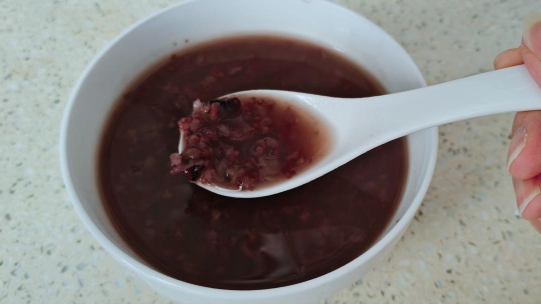 大米黑米加红豆🫘再放一个陈皮三宝,熬好之后加一把冰糖焖10分钟。